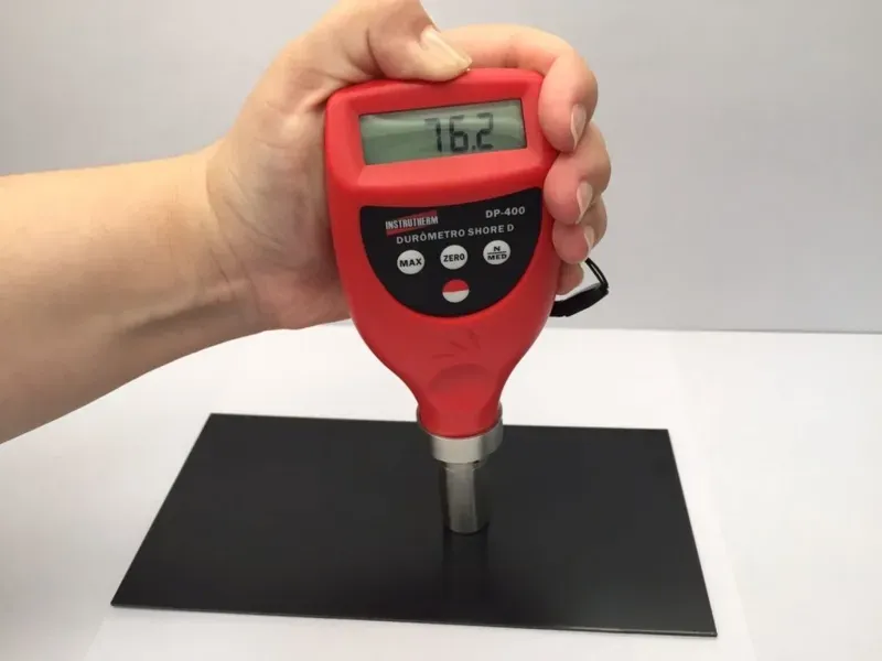 Saiba mais Durômetro Digital Durômetro Digital com escala D capaz de exibir valores de 0 à 100. O equipamento foi desenvolvido para determinar a dureza dos materiais. Normas Atendidas DIN 53505; ISO 868; ISO 7619; ASTM D2240; JIS K7215.