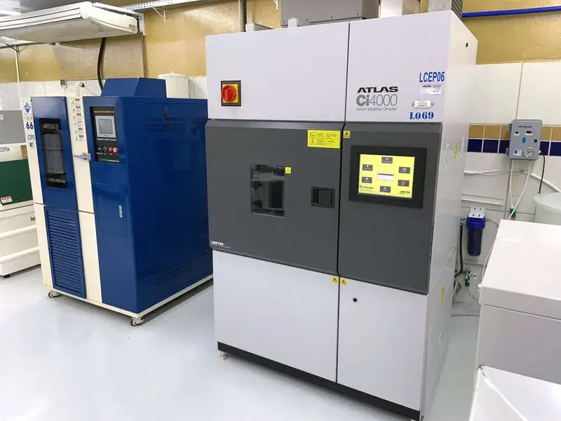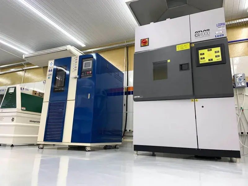 O LC Luz laboratório climático de ensaios industriais conta com equipamentos capazes de avaliar o comportamento mecânico do produto, sua performance térmica, acústica, mecânica, durabilidade, vibração, temperatura, corrosão e esforços repetitivos.